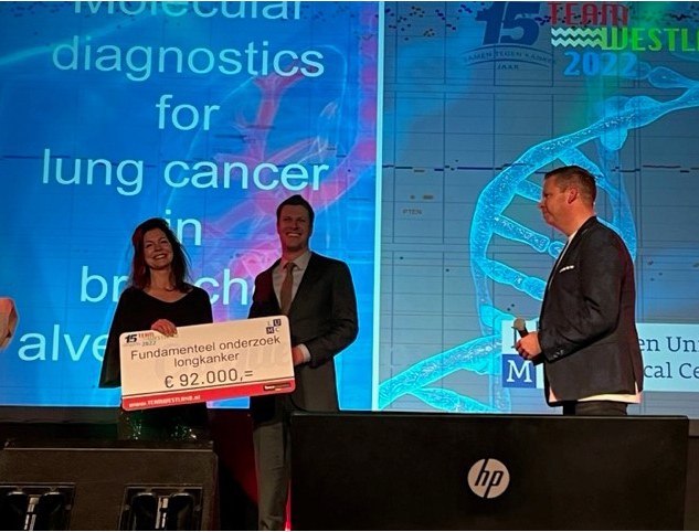 On November 19, pathologist Danielle Cohen and lung specialist Frank Borm of Team Westland received 92,000 euros for their research on lung cancer-related mutations in broncho-alveolar lavage fluid.