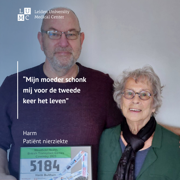 “Op maandag 25 februari 2019 belde het LUMC: ‘De operatiekamer is woensdag vrij, omdat een patiënt niet kan komen. Kunnen jij en je moeder komen?’ Dat overviel me, want onze operatie was nog niet eens gepland. Ik belde mijn moeder. Die was op dat moment 80 jaar. Ze was al die tijd al bang dat ze haar nier niet meer zou kunnen geven. Dus zij zei meteen: ‘We gaan!’ Dinsdag lagen we in het ziekenhuis en woensdag werd ik getransplanteerd.