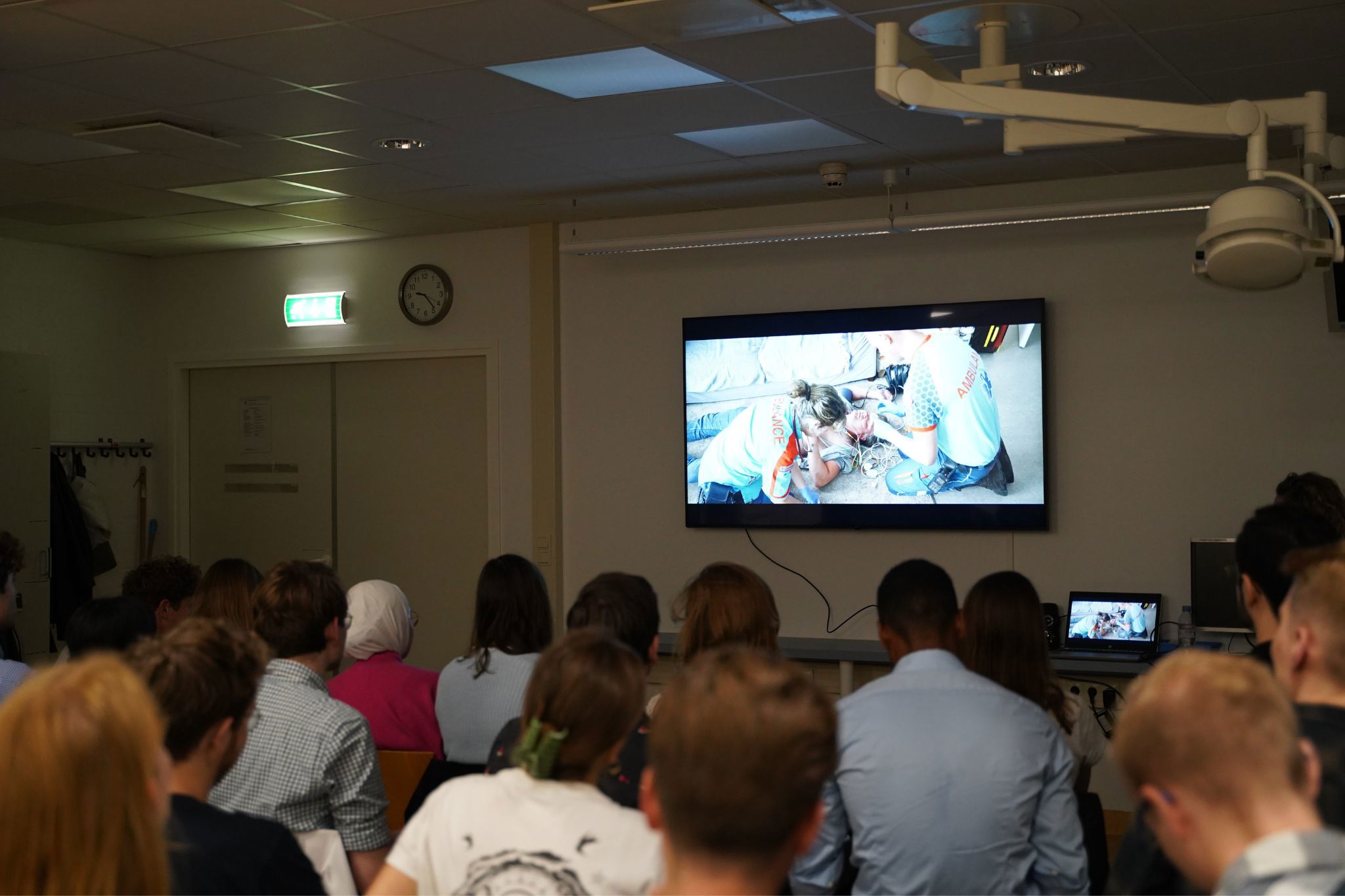 Inmiddels is de eerste training met film en live-onderwijs geweest. Studenten keken de films met daarin de hulpverleners en partijen die hier in een echte situatie ook bij betrokken zijn. Hierna werd de patiënt uit dezelfde film binnengebracht in het Skillslab en overgedragen door de ambulanceverpleegkundigen aan Roza Raeni, SEH-arts. In sommige gevallen was ook de beveiliging betrokken.