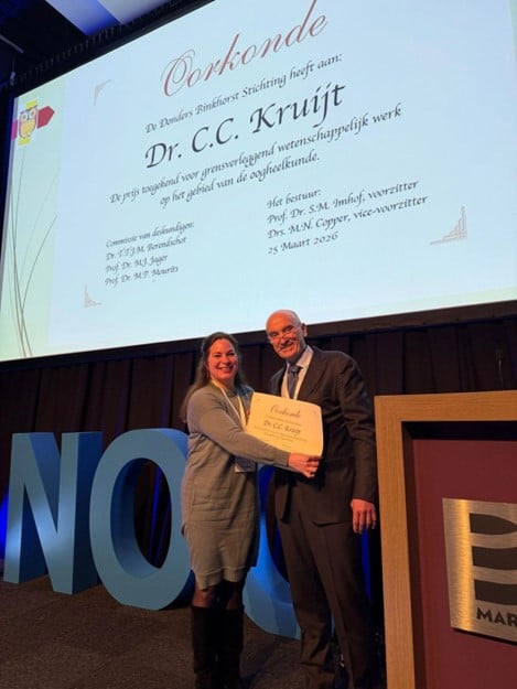 Dr. Charlotte Kruijt, oogarts binnen het LUMC, heeft de Donders Binkhorst-prijs voor het beste oogheelkundige proefschrift 2025 gewonnen.