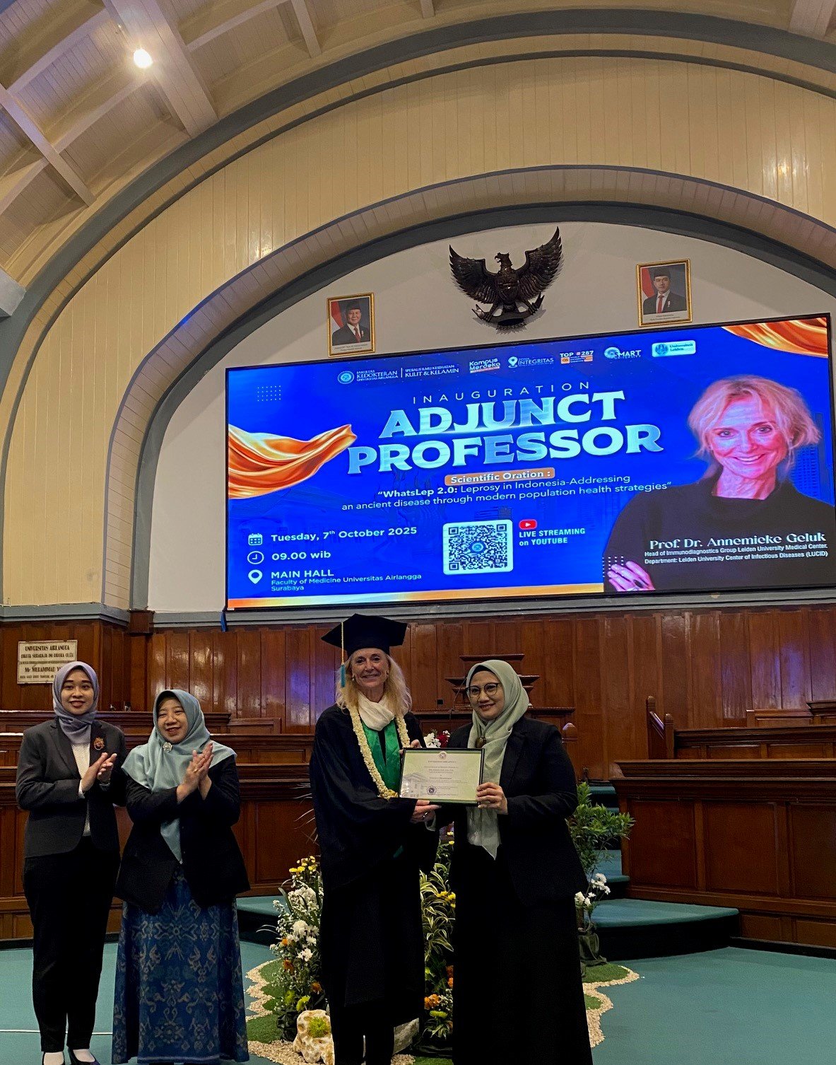 Annemieke Geluk benoemd tot adjunct-hoogleraar aan de Faculteit der Geneeskunde van de Universiteit Airlangga (UNAIR) in Surabaya, Indonesië