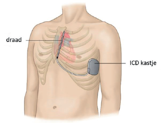 De ICD bestaat uit twee delen: een kastje (pulsegenerator) en één of meerdere geleidedraden(leads). De ICD wordt onder de huid aangebracht.