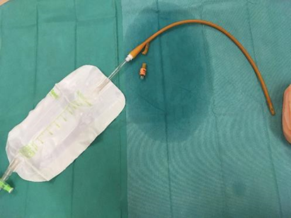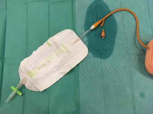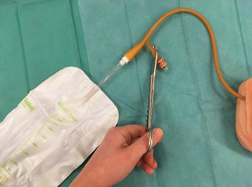 2. Hierdoor loopt het ballonnetje in de blaas leeg.