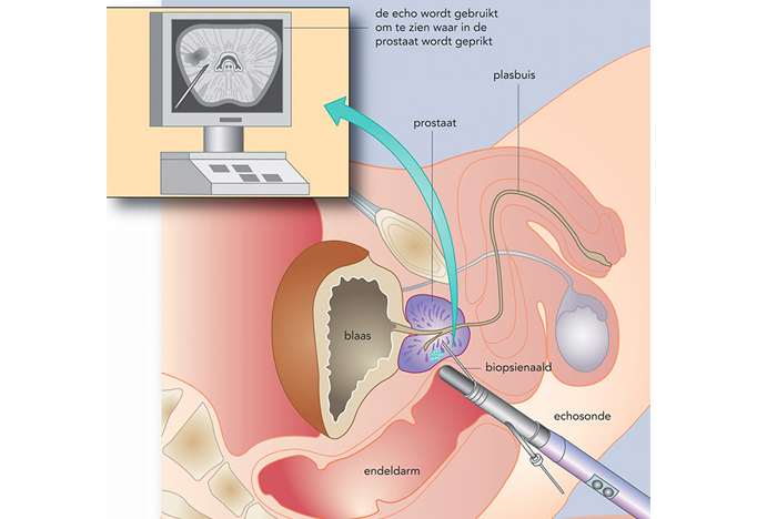 - Biopsie. Meestal is het nodig om tijdens de echografie een biopsie te doen. Hierbij haalt de uroloog verschillende stukjes weefsel uit de prostaat weg om deze microscopisch te laten onderzoeken. Zo kan hij of zij de definitieve diagnose stellen. De echo en biopsie duren samen ongeveer 20-30 minuten. De biopten worden in het laboratorium onderzocht. De uitslag krijgt u na 1-2 weken op de poli.
