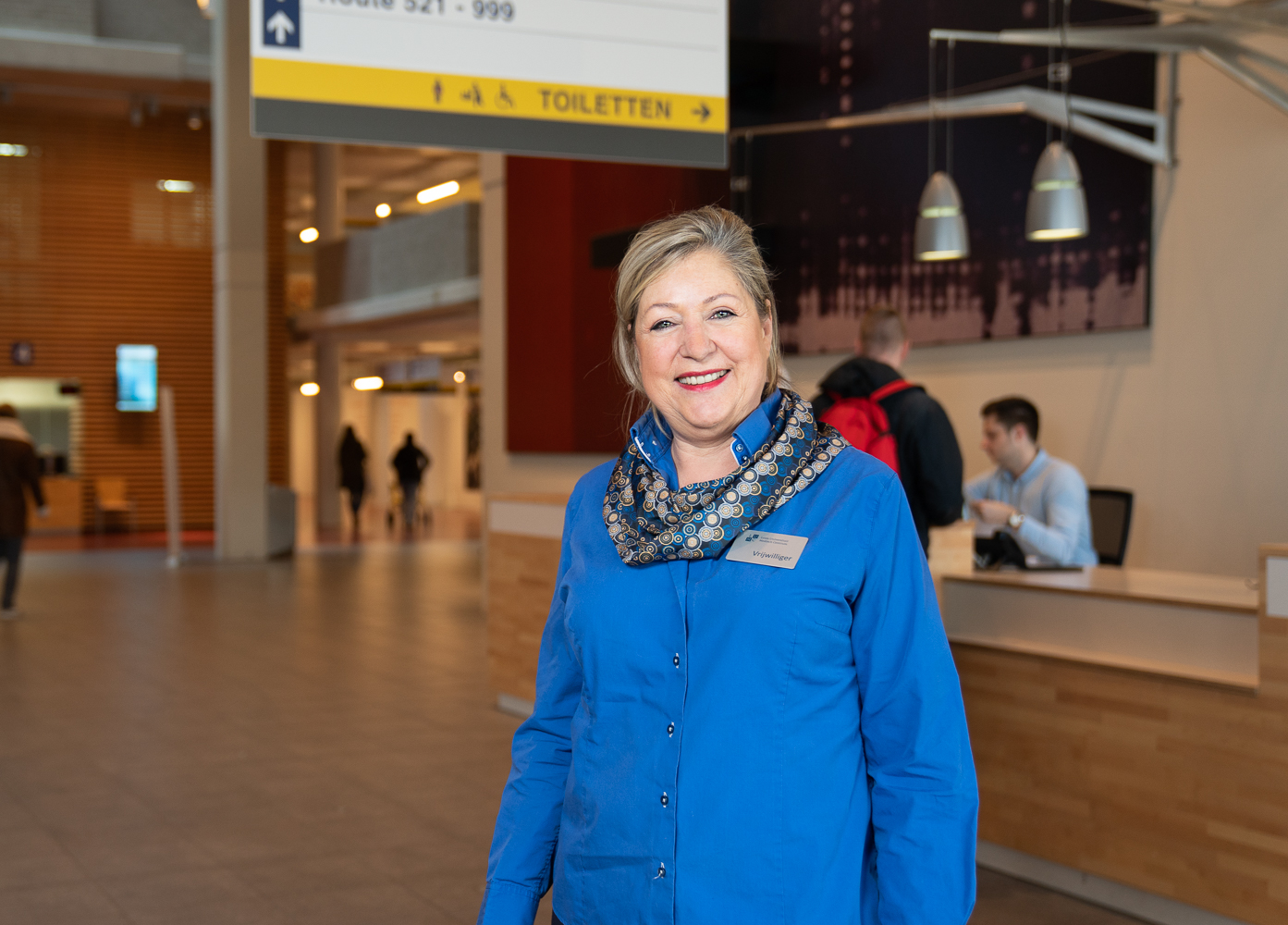 Zodra je het LUMC binnenloopt, zie je in de Centrale Hal de vrijwilligers staan. Zij staan hier om patiënten en bezoekers welkom te heten en hen de wegwijs te maken: “Ze zijn vaak nerveus, weten niet hoe het aanmelden werkt of kennen de weg niet”, aldus Liesbeth. Angela beaamt dit: “Dan zijn wij daar om hun gerust te stellen en te informeren.” Maar de service van Liesbeth en Angela gaat veel verder dan dit. Zo begeleiden ze bijvoorbeeld patiënten die slecht ter been zijn naar een afspraak of afdeling: “Ook als patiënten ontslagen worden en naar een revalidatiecentrum gaan, maar geen naasten hebben die ze kunnen begeleiden, dan doen wij dit met liefde”, vertelt Angela.