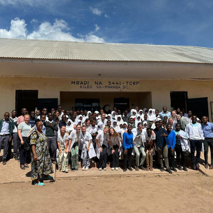 Students from the Kilimanjaro Christian Medical Centre (KCMC) in Tanzania and Leiden University Medical Centre (LUMC) pose for a group photo.
