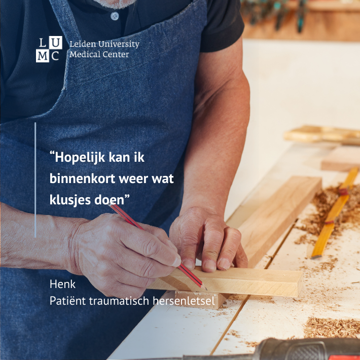 “Zelf lag ik na het ongeluk met de hamer twee weken in coma op de Intensive Care. Ik had een enorm gat in mijn hoofd en bloedingen in mijn hersenen. De schade was gelukkig niet zo groot als bij mijn vrouw, maar ik had liever mijn arm gebroken. Toen ik wakker werd, dacht ik: wat doe ik hier? Ik weet nog dat mijn zwager en schoonzus langskwamen en dat de verpleegkundige vertelde wat er was gebeurd. Het was heel raar dat ik me niets van het ongeluk herinnerde. Na twee weken verhuisde ik naar de verpleegafdeling van Neurochirurgie. Daar herkenden ze me meteen: ‘Joh, dat is Henk, de man van Hetty!’”