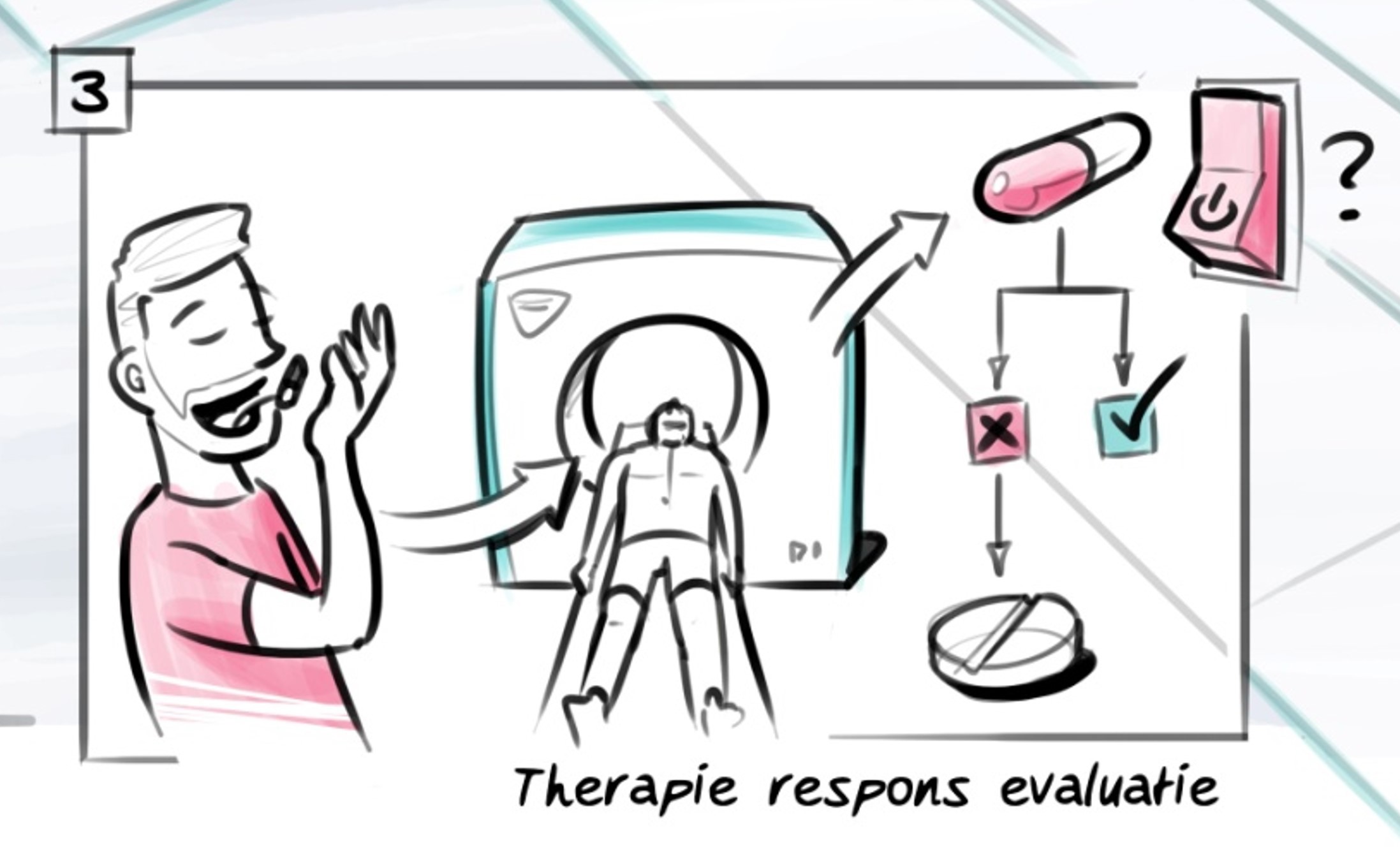 Molecular imaging can show at an early stage of therapy whether a therapy is effective. This will enable early response evaluation of many kinds of treatments, such as antibiotics, anti-arthritis medication, anti-ischaemic therapy, chemotherapy, targeted therapy, radiotherapy, proton therapy, etc. Duration of treatment, dose intensity, and treatment change decisions will be much better adjusted to the biological behaviour of a disease in an individual patient.
