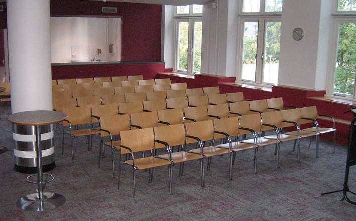 De voormalige aula van het Poortgebouw is verbouwd tot congreszaal. Het gebouw heeft daarnaast een ontvangstruimte, die ook gebruikt kan worden voor bijvoorbeeld een lunch, borrel of vergadering. Bekijk hieronder het maximum aantal personen voor de congreszaal en ontvangstruimte van het Poortgebouw.