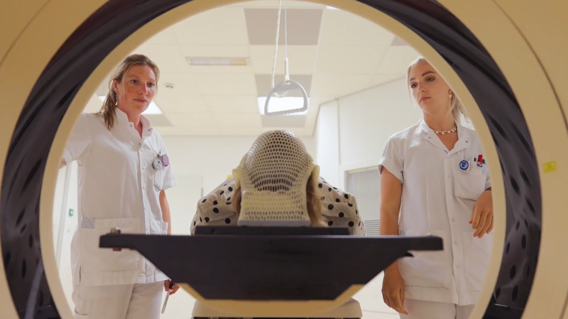 Wanneer bestraling nodig is voor het hoofd-/halsgebied, wordt er een kunststof masker gemaakt. Dit masker zorgt ervoor dat het hoofd-/halsgebied op zijn plaats blijft, waardoor u tijdens de bestraling stil kunt blijven liggen. Het kan zijn dat het masker dat u krijgt, afwijkt van degene die in de film wordt getoond, maar de procedure blijft hetzelfde.