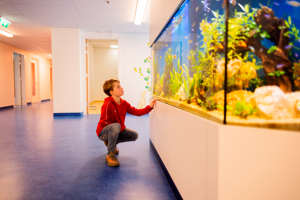 Een aquarium zorgt voor rust en ontspanning. Alleen al kijken naar de vissen is een heilzame bezigheid, het geeft rust en leidt af. Het is een manier om kinderen te laten vergeten waar ze zijn en in het moment op te gaan. Daarnaast ervaren kinderen minder pijn als ze afgeleid worden. (A. Arikan, 2020) (A. Sarman, 2023)