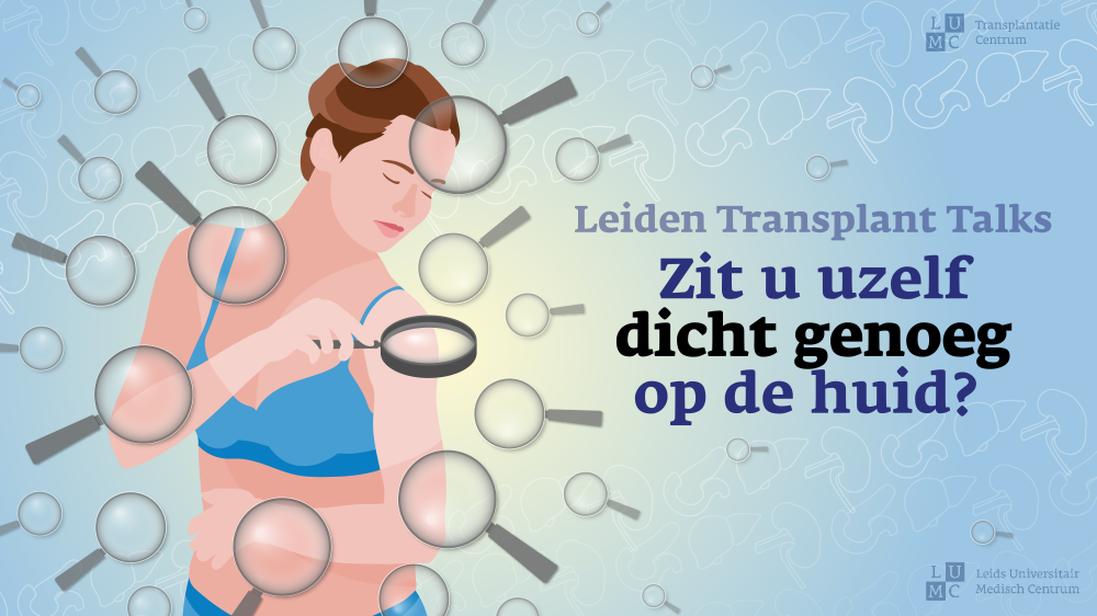 Maandag 1 juli 2024. Door de medicijnen die u moet gebruiken na uw transplantatie bent u gevoeliger voor bepaalde huidaandoeningen. Elsemieke Plasmeijer Dermatoloog laat zien waar u mee te maken kunt krijgen. Er is extra aandacht voor huidkanker, wat zijn de risico’s, hoe kunt u het herkennen, is het te behandelen en wat u kunt doen om uzelf zo goed mogelijk te beschermen. Wat zijn feiten en fabels, zijn bepaalde app’s zinvol?