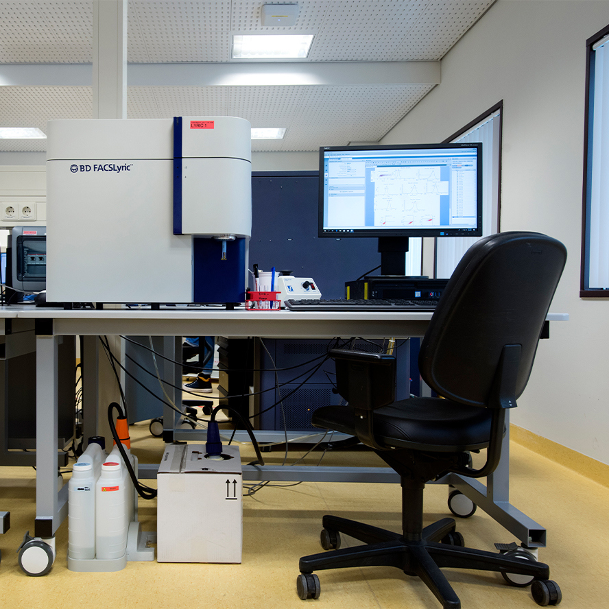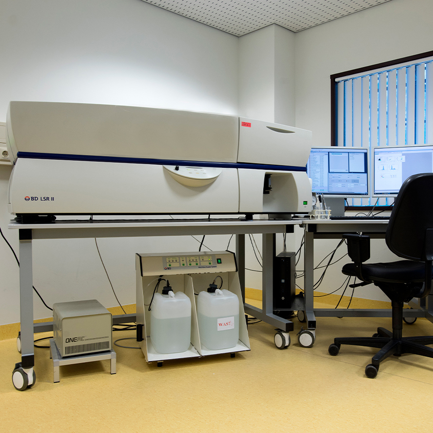The FCF operates four standard conventional flow cytometers (up to 8 fluorochromes) and seven advanced conventional flow cytometers (up to 12 fluorochromes), including research-grade instruments located in biosafety level II and III laboratories (ML-II and ML-III) for analyzing biohazardous materials.